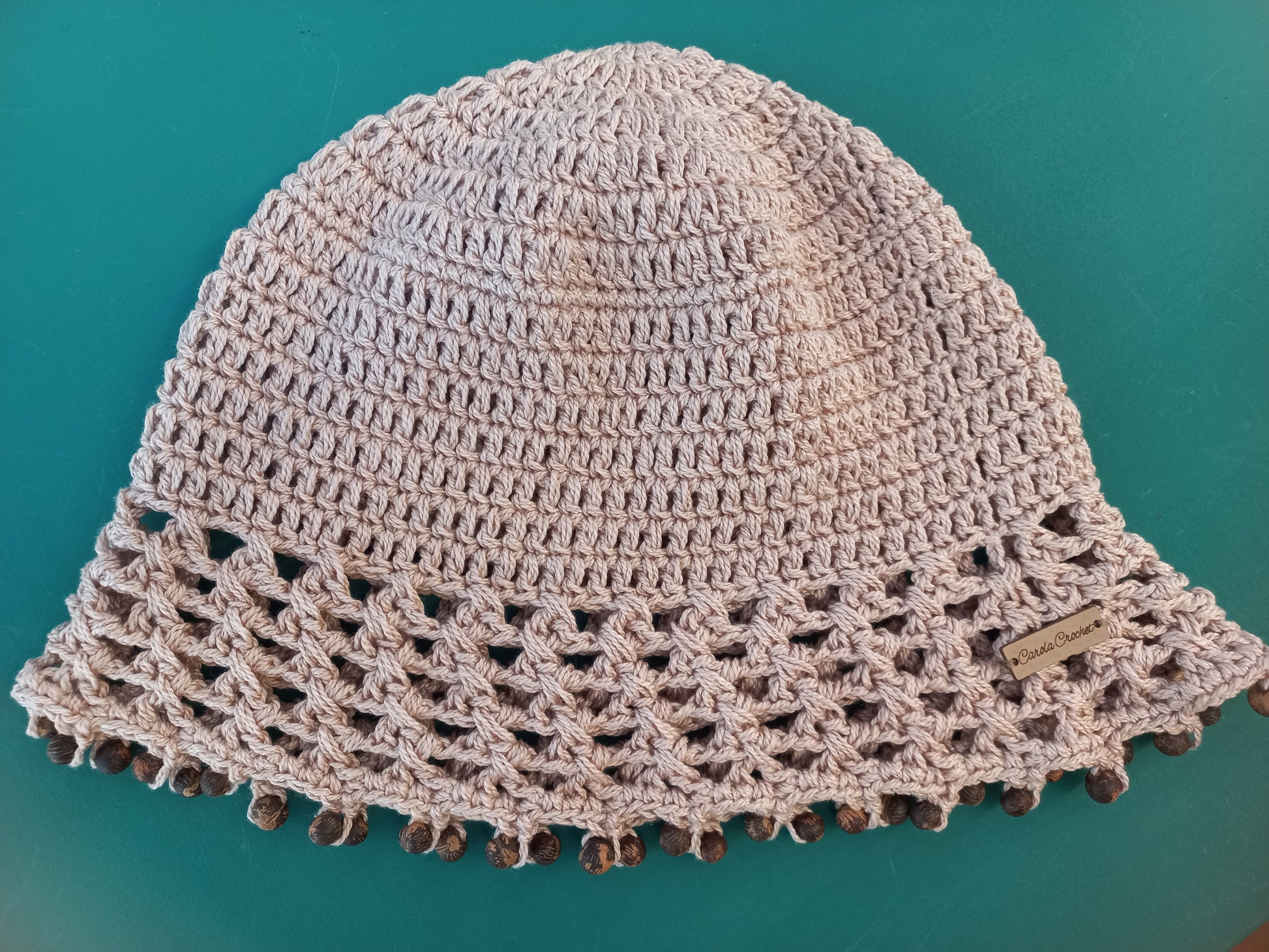 Chapéu de crochê com fio 100% algodão e detalhes em sementes de açaí